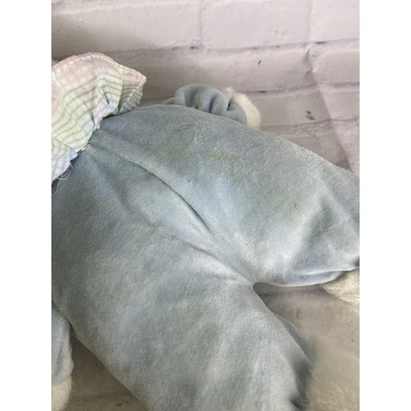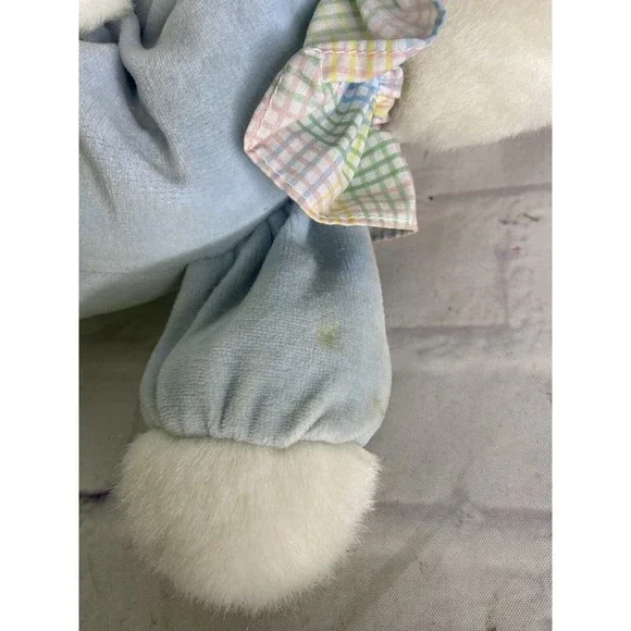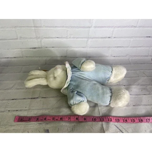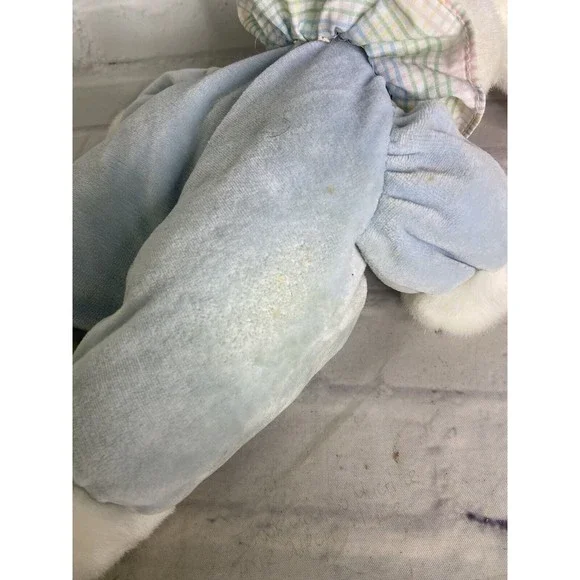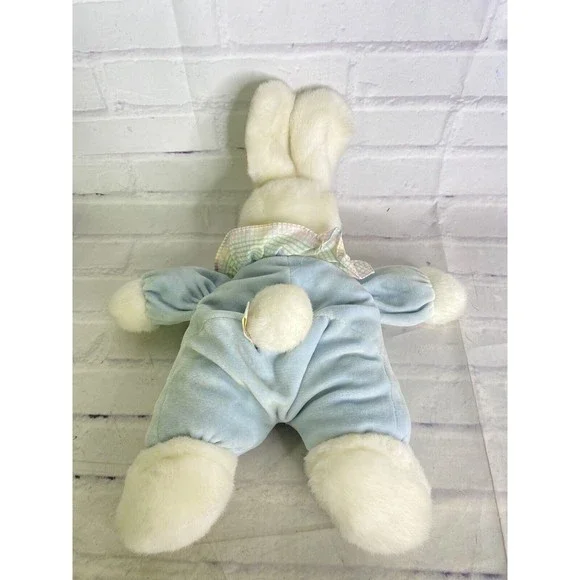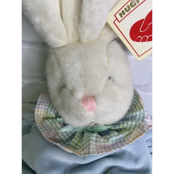 VTG Hugfun Bunny Rabbit Plush Stuffed Animal Toy White Blue Body Gingham Collar