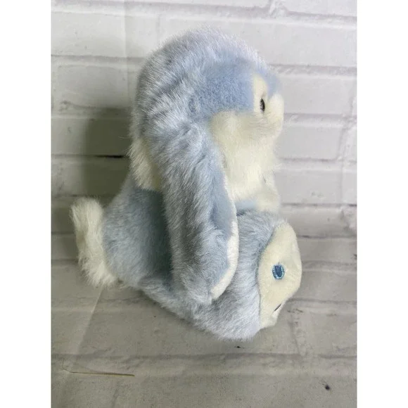 VTG Chosun Blue White Sitting Bunny Rabbit Plush Stuffed Animal Toy With Bow