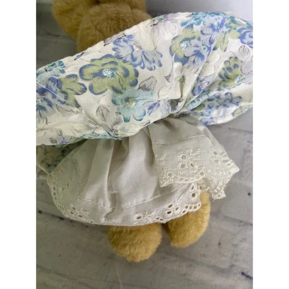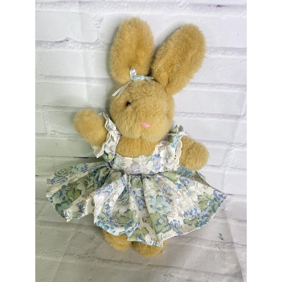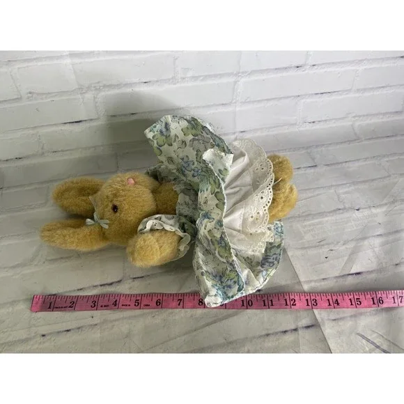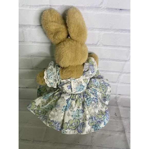 VTG TL Toys Bunny Rabbit Floral Dress Bow Plush Stuffed Animal Toy Tan Brown