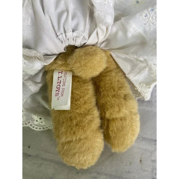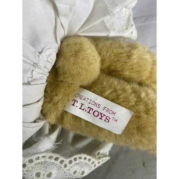 Up for grabs is a preowned Vintage VTG TL Toys Bunny Rabbit Floral Dress BowPlush Stuffed Animal Toy Tan Brown. Will come EXACTLY as shown! She is missingan ear bow and a foot...