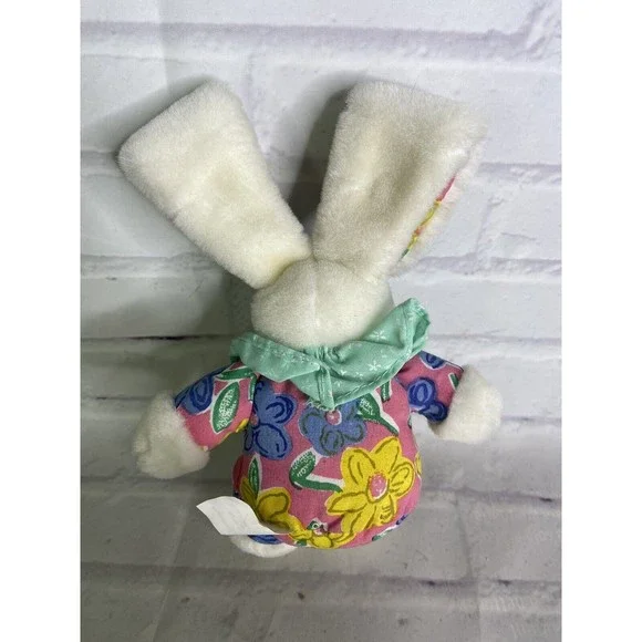 MTY International Bunny Rabbit Plush Stuffed Animal Toy Floral Ears Body Pink