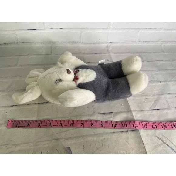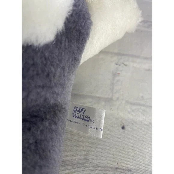 Up for grabs is a preowned Vintage VTG Soft Things Bunny Rabbit White Gray RedPlaid Bow Plush Stuffed Animal Toy. Will come EXACTLY as shown! There arecosmetic flaws and discoloration throughout the plush all noted in photos! SOLDAS IS! Measurements Laying flat are included in photos! Please refer to allphotos. Ask any questions prior to purchasing. Thanks!