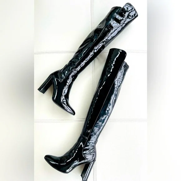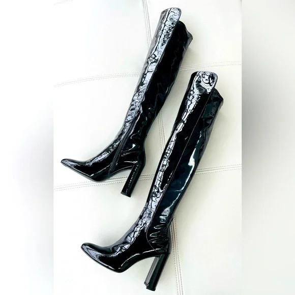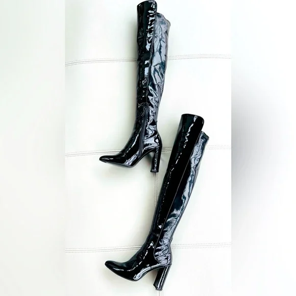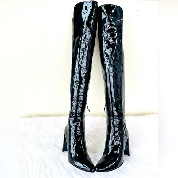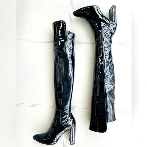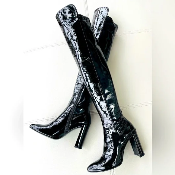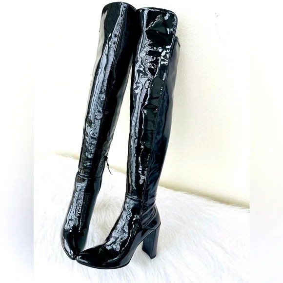 NWT! Stuart Weitzman Over-the-Knee Black Patent Leather Boots Size 39 Stunning boots - sophisticated style with a fun attitude.upper: leatherlining: leathersole: leather insole...
