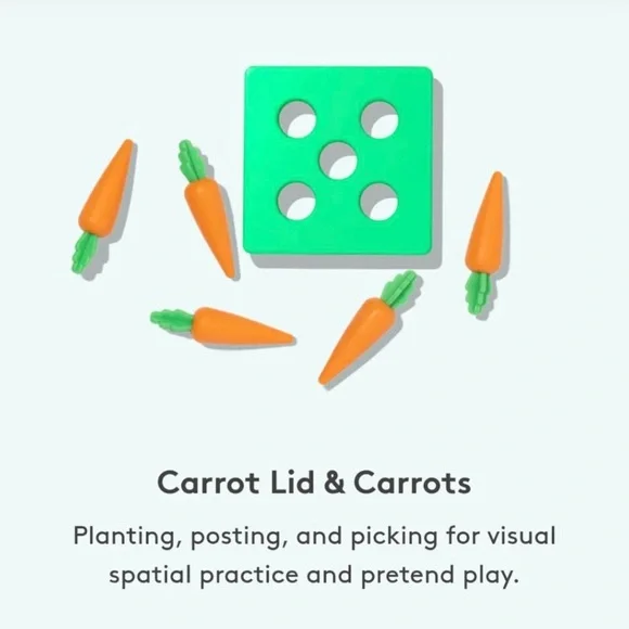This engaging toy set features vibrant elements, designed to stimulate creativity and learning. Perfect for enhancing fine motor skills, it offers an educational play experience with its colorful and interactive components. Includes everything pictured. Original box and play guide not included. *Missing 1 carrot and 1 coin*