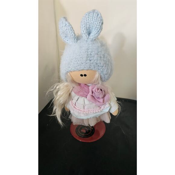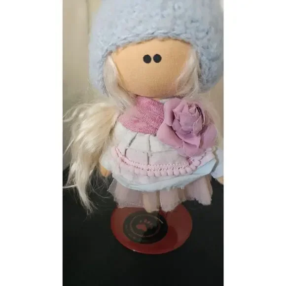 Tilda doll,Pink, soft,textile,Handmade doll,Fabric doll,Rose,interior doll,doll,Fabric doll,Rag,children´s,gift, knitted hat, interior doll