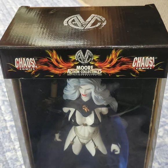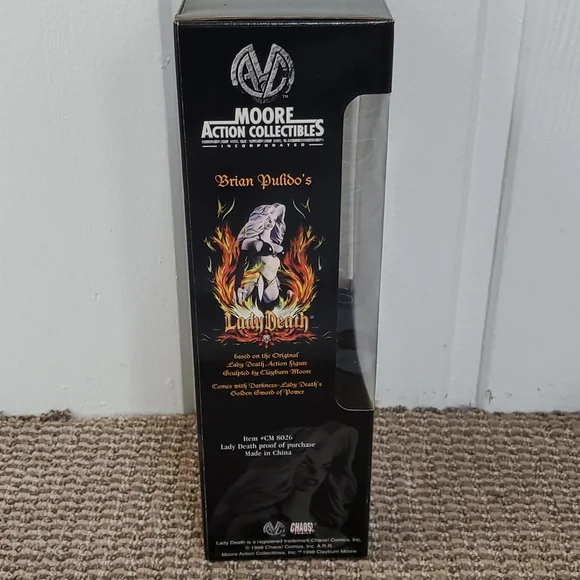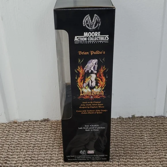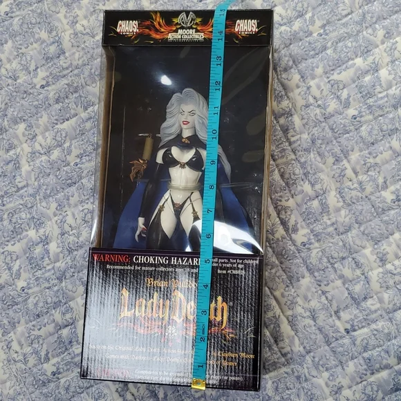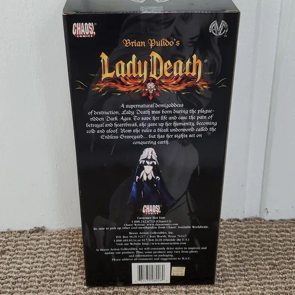 Lady Death 1999 action figure collectible. Featuring original sticker price.Never opened as it was purchased as a collectible in 1999. Stored in a glass hutch. Excellent condition- please refer to pics.