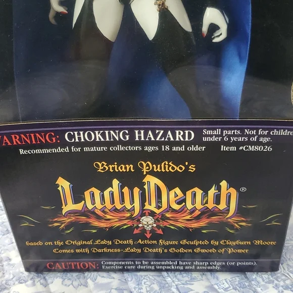 Lady Death 1999 action figure collectible. Featuring original sticker price.Never opened as it was purchased as a collectible in 1999. Stored in a glass hutch. Excellent...