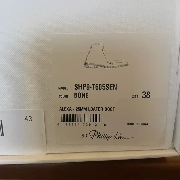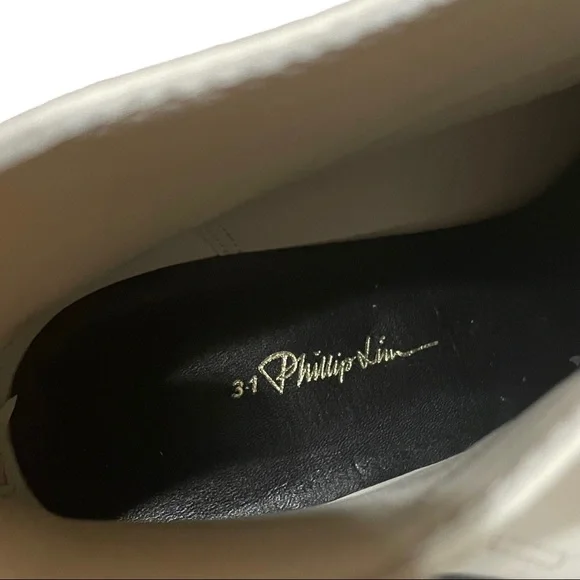 3.1 Phillip Lim White(Bone) Alexa 25mm Loafer BootSz 7.5 / 38Brand:3.1 Phillip LimColor:White (Bone) with black soleMaterial:Leather Features:- Loafer/ ankle boot look- Slip on with back zip closure- Front loafer stitching- New with out box, no dust bag- Square toe- Stacked heel (1”, 25mm)- Rubber sole- SHP9-T605SEN- boots do have smudges, faint, tried my best to reflect on pictures.