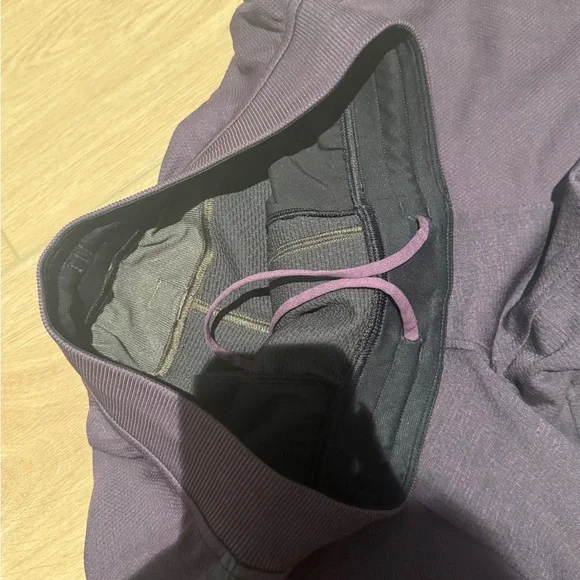 Men’s lululemon eggplant purple matching two piece set, sweatshirt and sweatpants in size M Gently used with minor signs of wear throughout. Light deodorant stains on the back...
