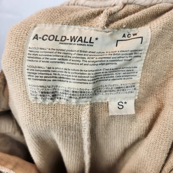 A-COLD-WALL MENS TAUPE RESTRICH SWEATPANTS SIZEMens S BNWT with defect
