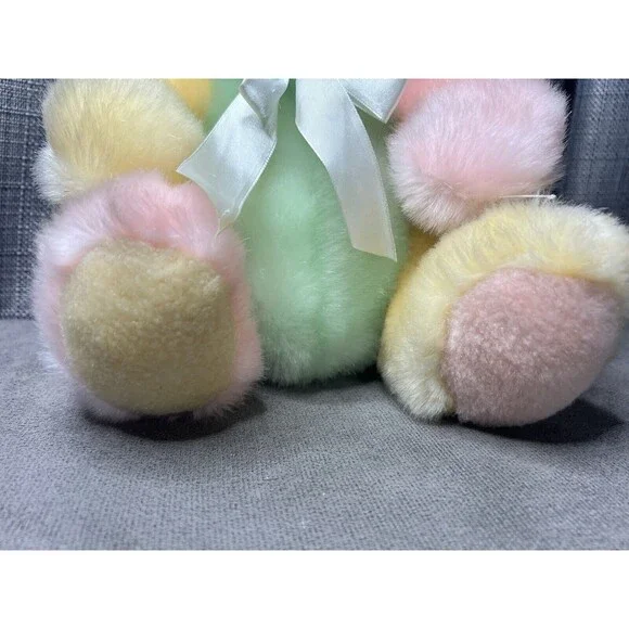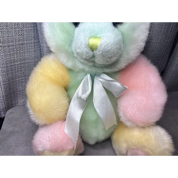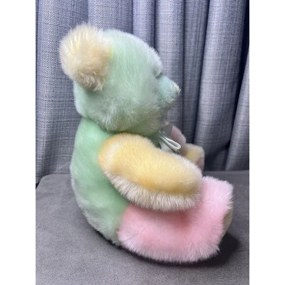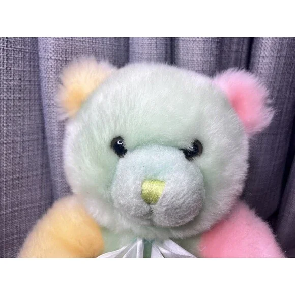 VTG Tony Toy Mint Green Pink Yellow Teddy Bear Plush Stuffed Animal Ribbon