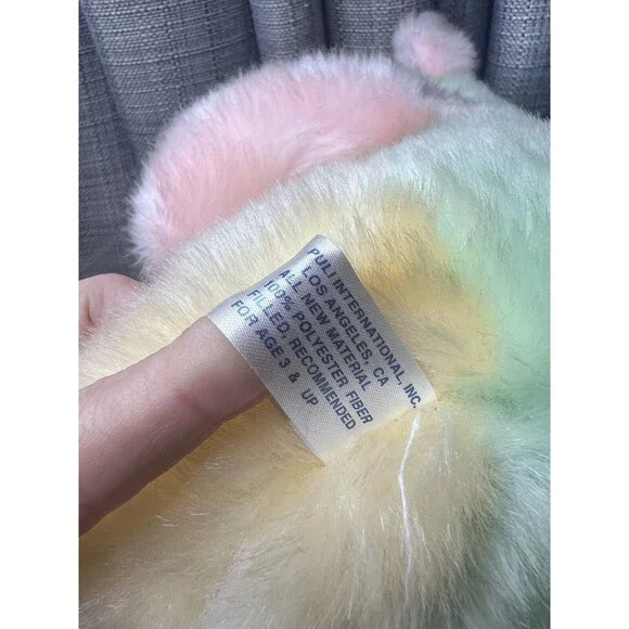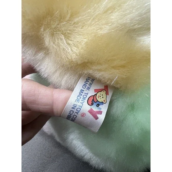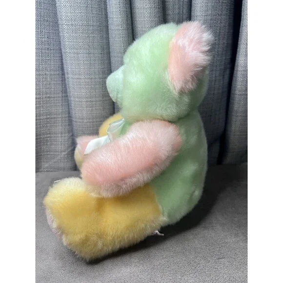VTG Tony Toy Mint Green Pink Yellow Teddy Bear Plush Stuffed Animal RibbonGently used condition, green face nose, pink yellow feet arms has original ribbonNo returns