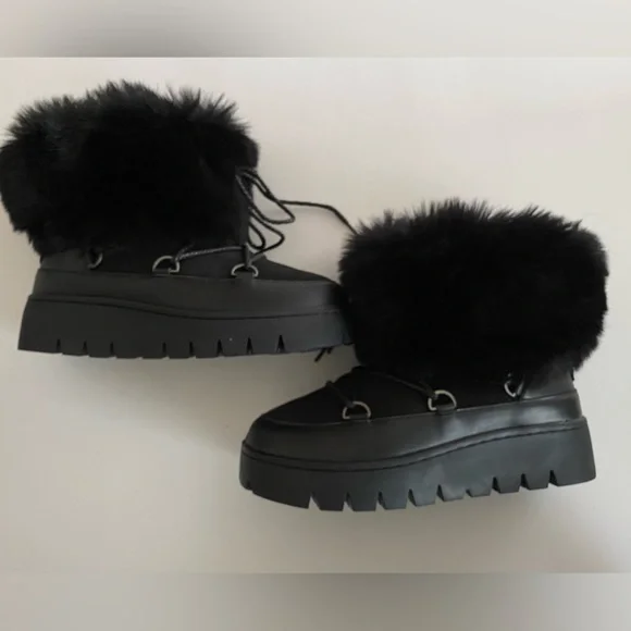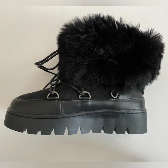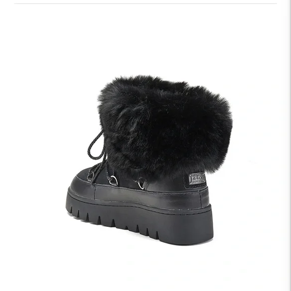 Cute and cosy snowboot style Casper in washed leather finish sheepskin and luxe faux fur trim with metal eyelet lace fastenings and a sturdy wedge sole perfect for Winter wear. BNIB- Never wornSold out onlineSmoke, pet and odor free