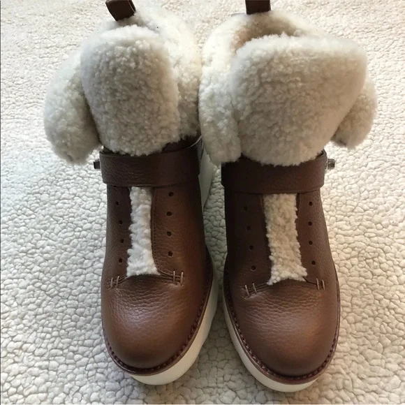 COACH URBAN HIKER Shearling Leather Platform Boots, Saddle/Natural. MSRP $375.New In BoxSizes: US Women´s 9.5Color: Saddle/Natural (Brown)Description:Trek the city in the...