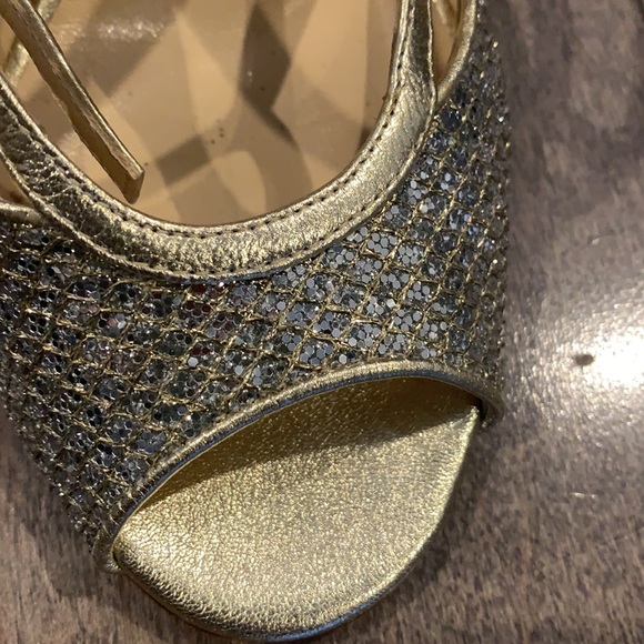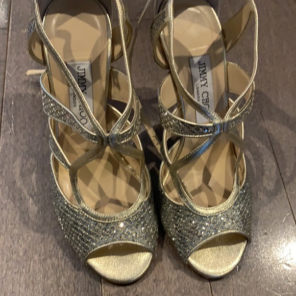 Gorgeous 4” jimmy choo heels. Gold and crystal. Very good condition, minor scuffing on heels that could probably be professionally cleaned.
