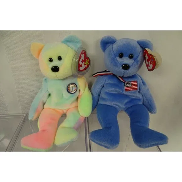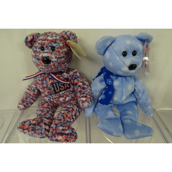 8 Ty Beanie Babies w/ 4 Display Cases Ariel Ice Blue Snowflake America Princess