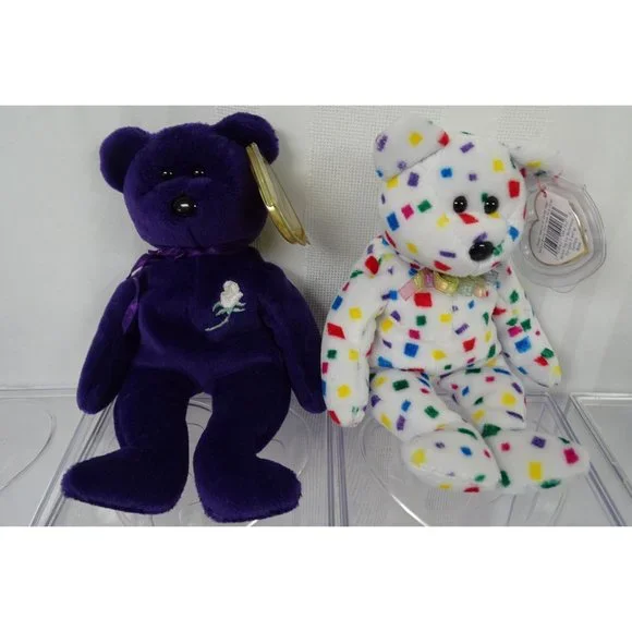 Lot of 8 Ty Beanie Babies and 4 display cases. Three of the display cases are Ty, the other is a third party case. Lot includes the following Beanie babies:July Happy Birthday bear w/ red noseAriel - Retired 1981-1988Ice Blue SnowflakeTY2K - The Y2K New Year Confetti Bear 2000America Blue VersionB.B. Birthday Teddy BearUSA Bear - DOB 7/4/2000Princess Diana - Purple bear 1997Condition: Pre-Owned GoodAll bears have their hang tag and in clean condition. Cases are in good condition.