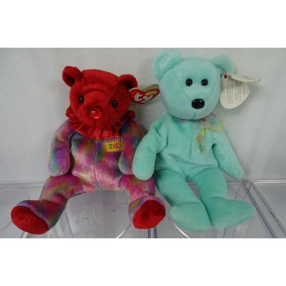 Lot of 8 Ty Beanie Babies and 4 display cases. Three of the display cases are Ty, the other is a third party case. Lot includes the following Beanie babies:July Happy Birthday...