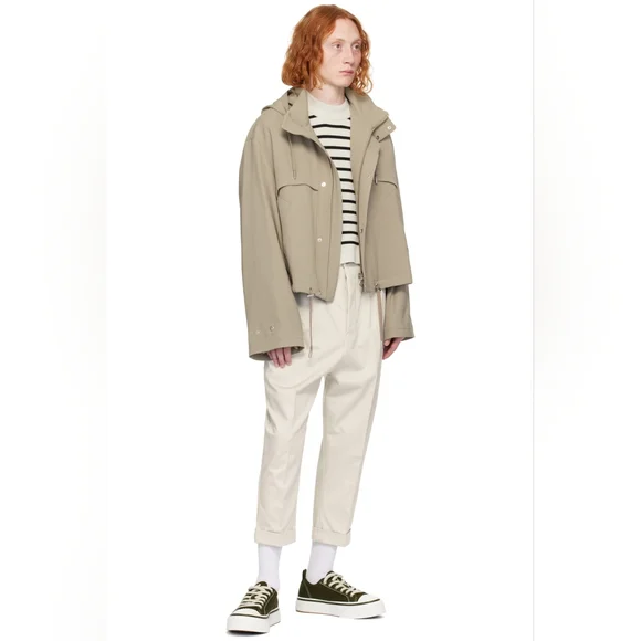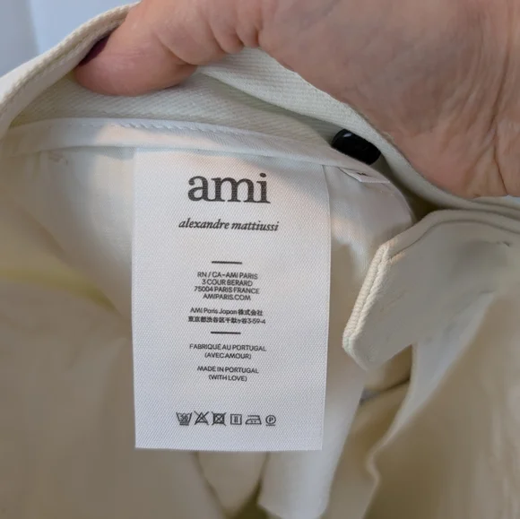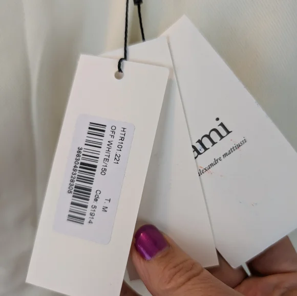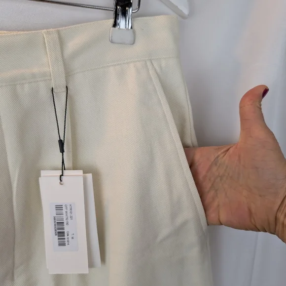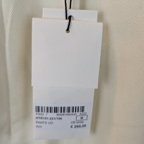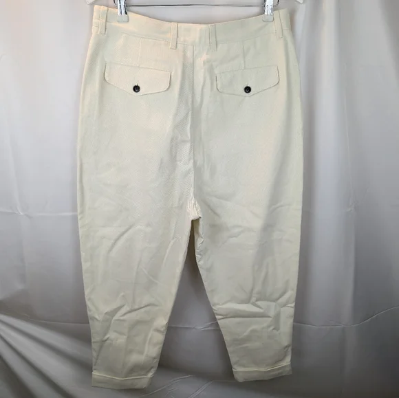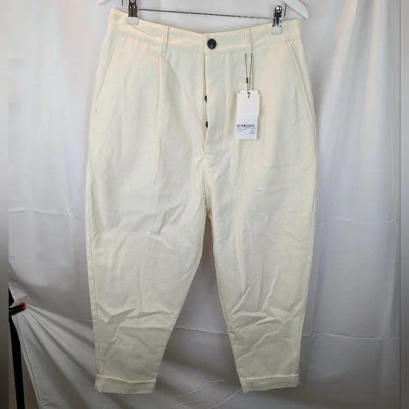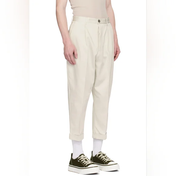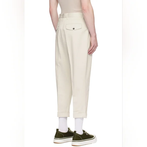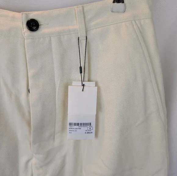 AMI Alexander Mattiussi Carrot Oversized pants size M BNWT Off White cotton oversized carrot-fit trousers from AMI Alexander Mattiussi featuring belt loops, front button fastening, pleat detailing, drop crotch, tapered leg, cropped, turn-up cuffs, two side slash pockets and two rear flap pockets.waist 34"rise 17"inseam 22.5"leg opening 13"