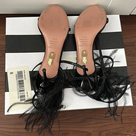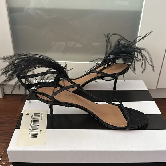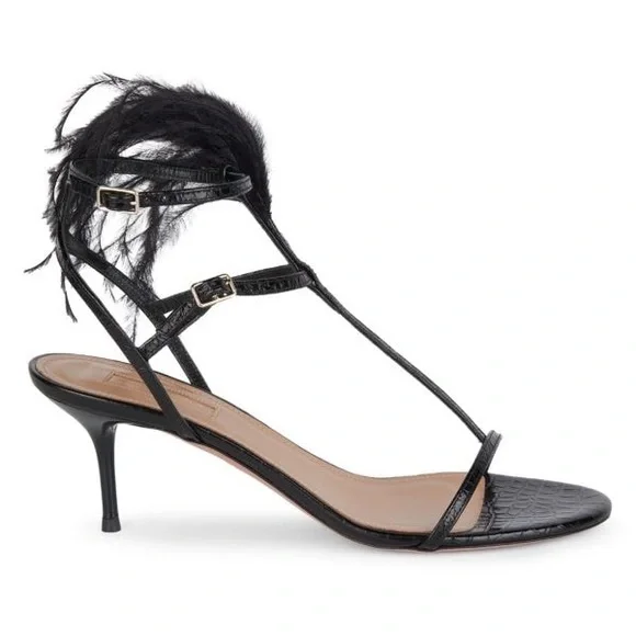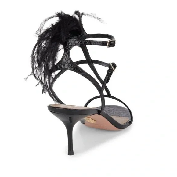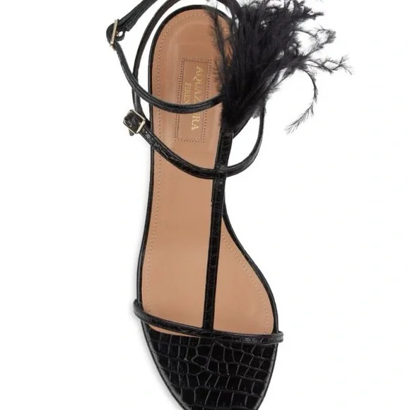 AQUAZZURA Ponza Ostrich Feather Croc-Embossed Leather Sandals