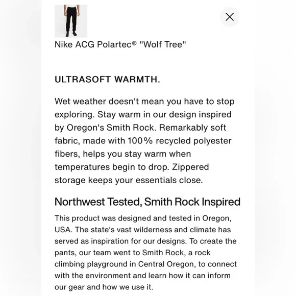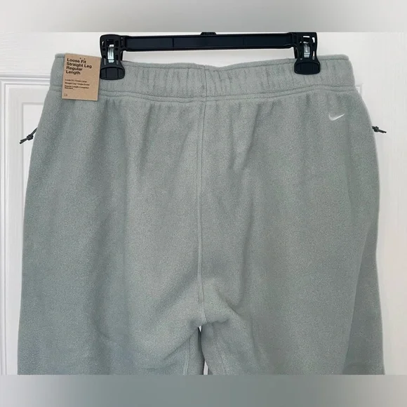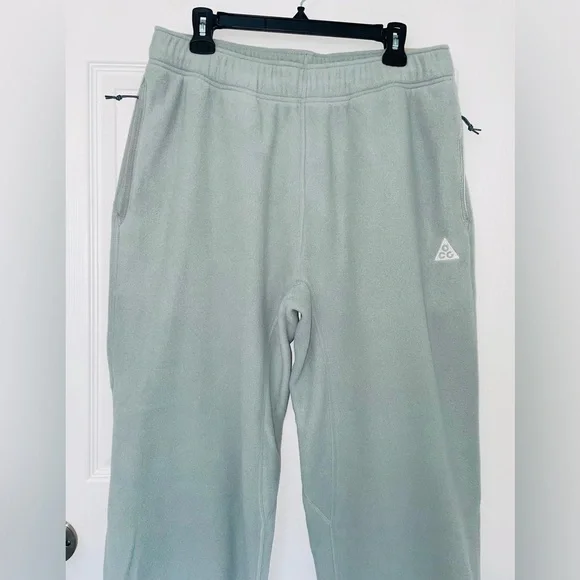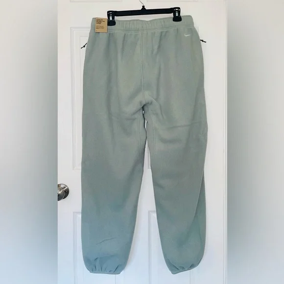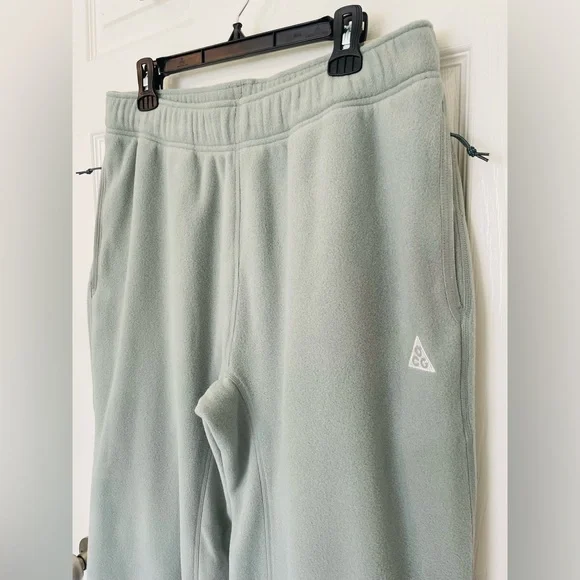 Sage green colored Men’s Nike ACG Polartec “Wolf Tree” sweatpants. Loose, oversized fit. Thicker elastic waistband with drawstring (ties on inside). Zippered pockets on hips. Straight leg with jogger style elastic cuff bottom. Regular length. Size large. Soft and warm fleece fabric made of 100% Polyester (atleast 75% Recycled). New with tags.Feel free to ask questions or make me an offer!!**stock photos colors are different from actual color (Sage) for sale in closet and just to show fit/details**
