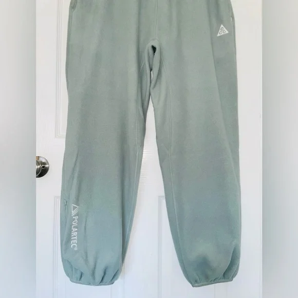 Sage green colored Men’s Nike ACG Polartec “Wolf Tree” sweatpants. Loose, oversized fit. Thicker elastic waistband with drawstring (ties on inside). Zippered pockets on...