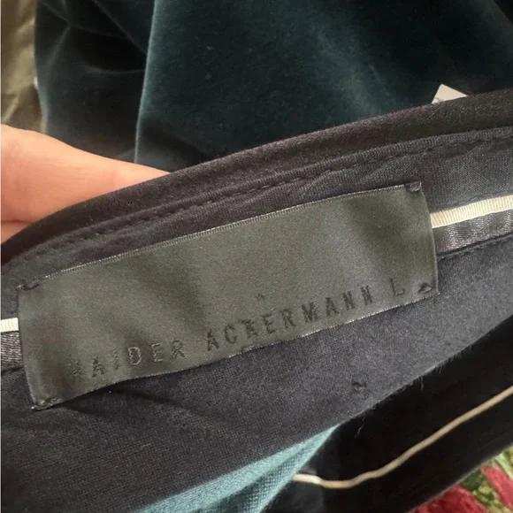 Haider Ackermann designer green velvet trouser dress pants, size large Good condition but does have some slight wear at the kneeWaistband is black
