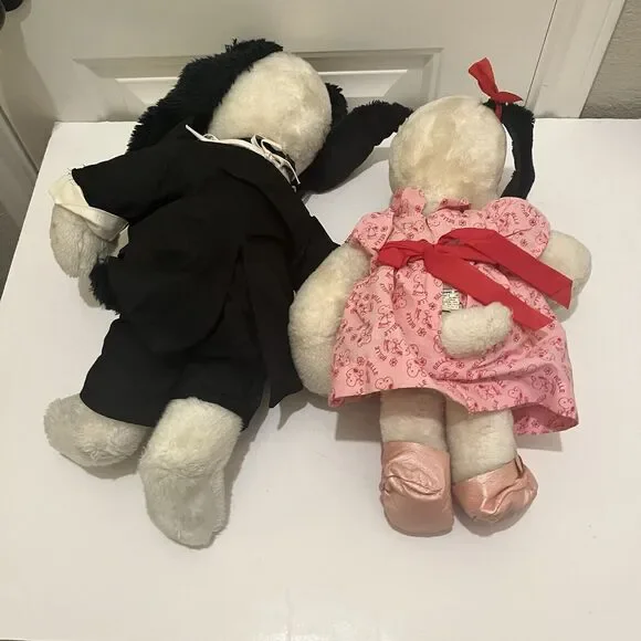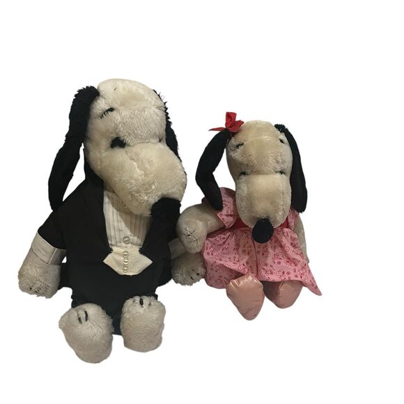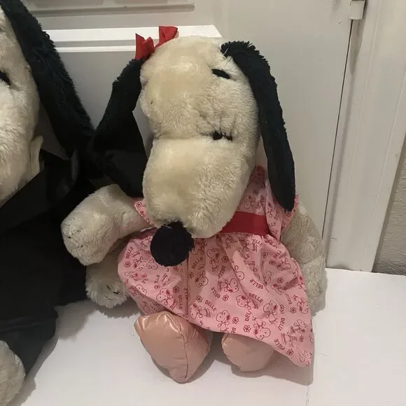 Vtg 1968 Snoopy Plush Tuxedo 20" and 16" Belle Girl Plush Pink Dress Dog Lot