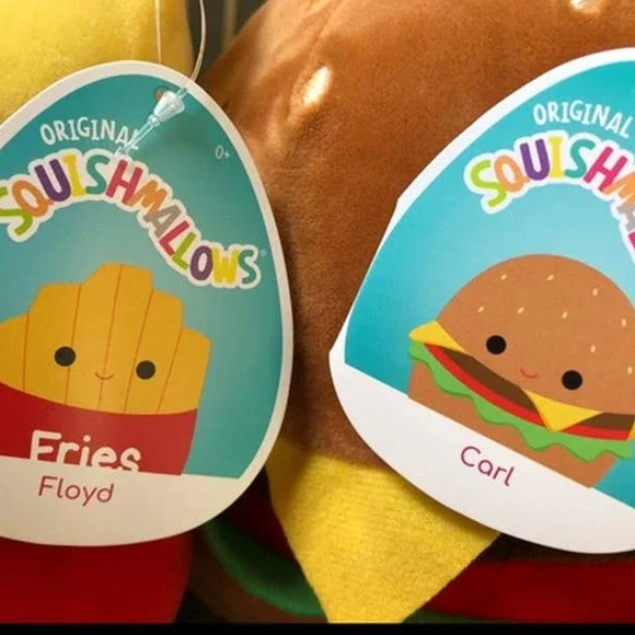Squishmallows Carl Burger Floyd Fries 12" Plush Set Food Squad Squish Pillow ToySquishmallow collection kellytoy new with tags nwt12 inch Squishmallowsfood collection squad hamburger cheeseburger ham burgerset of 2: 12” Carl The Burger brown green black red and Floyd The Fries red yellowSquish mallow mallows squishy plush toy kids ultra soft huggable stuffed animal plushy plushie soft toys kawaii cute BELOW are TAGS only and NOT for saleSquishmallow Sea LifeSquishmallow Fruit SquadSquishmallow 5 BelowSquishmallow Summer SquadSquishmallow EasterSummer SquishmallowSquishmallow CowSquishmallow foodSquishmallow BigfootSquishmallow FrogSquishmallow DogSquishmallow BirdRare SquishmallowSquishmallow PattySquishmallow RonnieSquishmallow BelanaSquishmallow BennySquishmallow BrinaSquishmallow WendySquishmallow AverySquishmallow BabsSquishmallow JackSquishmallow claireSquishmallow stacySquishmallow celineSquishmallow philippeSquishmallow buffy stixSquishmallow emilySquishmallow yeti yuri gabbt yollieSquishmallow Omar brooke