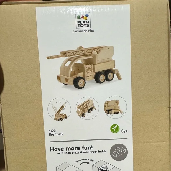 This wooden fire truck toy is perfect for imaginative play. Crafted with natural wood, it features a movable ladder and sturdy wheels. Ideal for young adventurers.New in box. Box...