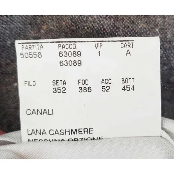 Unworn Canali Milano Flecked Pleated Trousers15% Cashmere / 85% Wool BlendBrown and Gray tones. Mint condition, looks unworn. No holes. No stains.Size 56, see measurements below:Waist: 39" (can let out at least 2")Inseam: 32.5" ( with 3" fold)