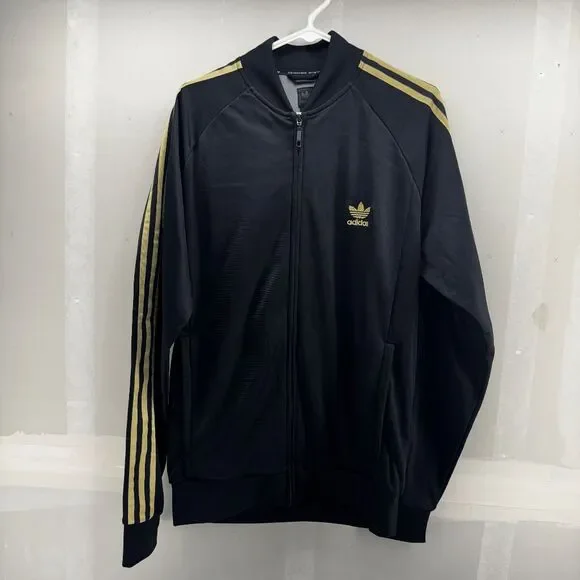 Adidas Firebird Tracksuit XL Jacket L Pants Black Gold Mens Vintage TrefoilExcellent used condition.Jacket Chest 46" Length 31" Sleeve length 36" Pants Waist 32" Inseam 34"