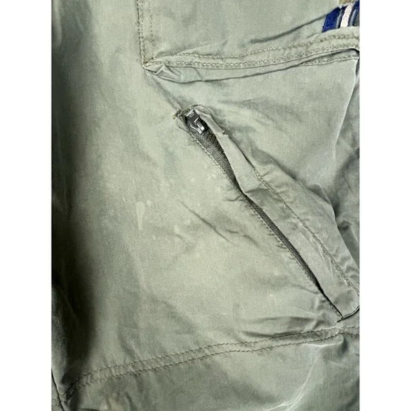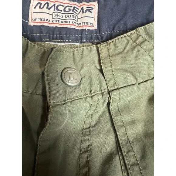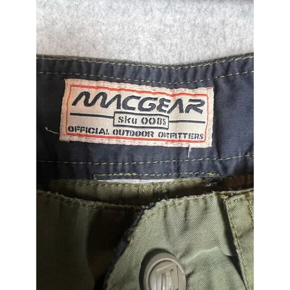See all pictures for details not size tag some spotsThese Vintage Macgear Pants for men in Army Green, size 29, are a stylish and comfortable choice for casual occasions. Made from a cotton blend fabric with a relaxed fit, these wide-leg cargo pants feature a zipper closure and multiple pockets for added functionality. The vintage design with elements of cyber, grunge, rave, skate, 90s, and hip hop themes makes them a unique addition to any wardrobe. Perfect for all seasons, these pants can be easily cared for with machine washing, making them a practical and fashionable choice for men looking for a touch of retro style.