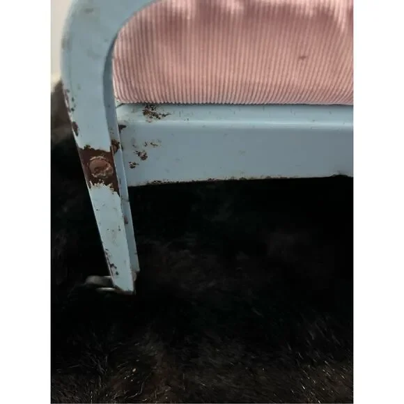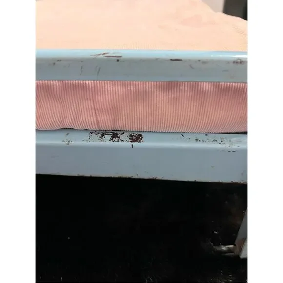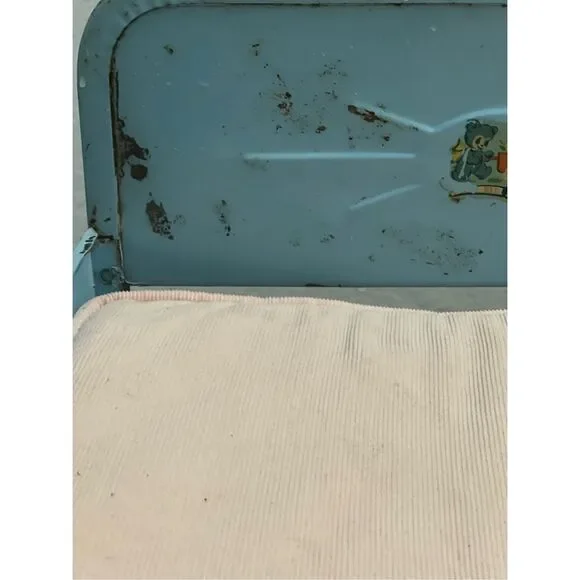 Cute vintage doll bed Please see photos to see rust and staining from age of item