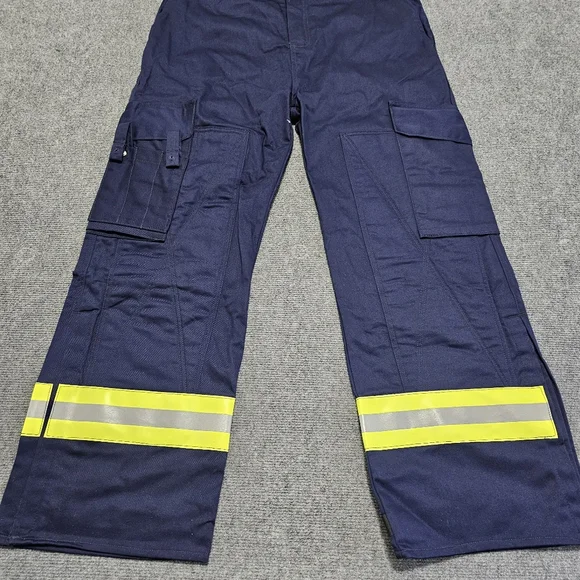 LAKELAND Fyrban FR Fire Resistant Canvas Cargo Reflective Pants Fireman WorkwearView photos for condition and measurements.Missing snaps on side Cargo pockets.Shell is in excellent condition.No rips or holes.Barely used.