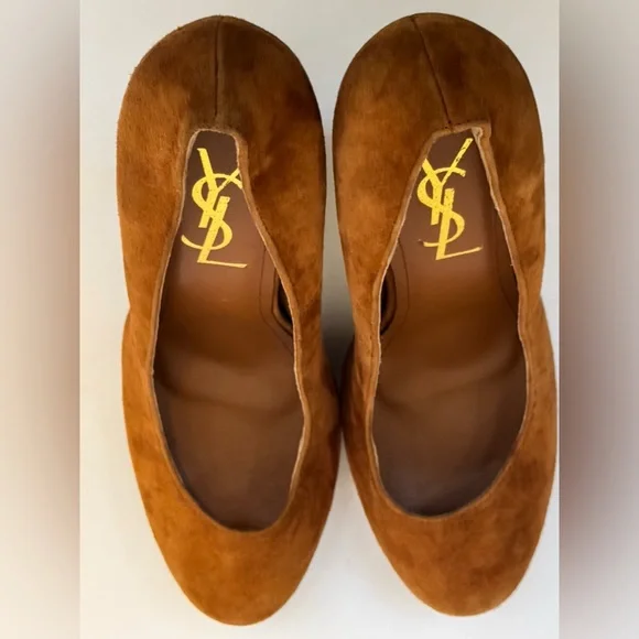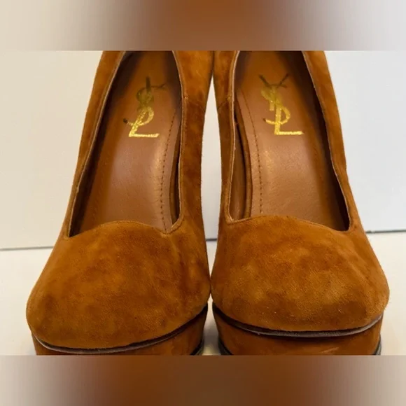 CLASSIC Saint Laurent YSL Light Brown SuedeTRIBUTE Plattorm Pump. IN EXCELLENT CONDITION - LIKE NEW WORN ONCE. No nicks or Marks! No original box. heel height about 5 inches