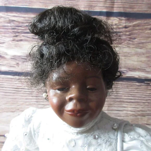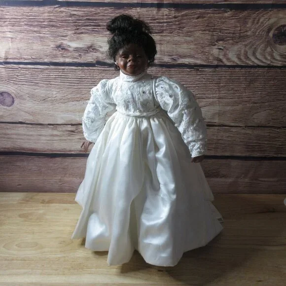 African American Porcelain 18" Bridal Doll Wistful Face Inc StandVintage 1990sIncludes StandNo identifying brandCondition: Pre-Owned GoodCheck out my closet for more deals. I´m happy to create bundles.
