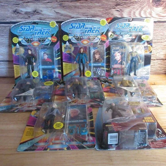 Lot of 8 Star Trek Next Generation Human Action Figures - NO DUPS VTG 1994Each Figure is about 5 inches tall. All still in original packaging* Includes:Dr Beverly CrusherLieutenant Natasha YarCadet Wesley CrusherAdmiral Leonard McCoyKeiko O´BrienLieutenant Commander DataCaptain Jean-Luc Picard as Dixon HillLieutenant BarclayCondition: New With TagsCheck out my closet for more deals. I´m happy to create bundles.