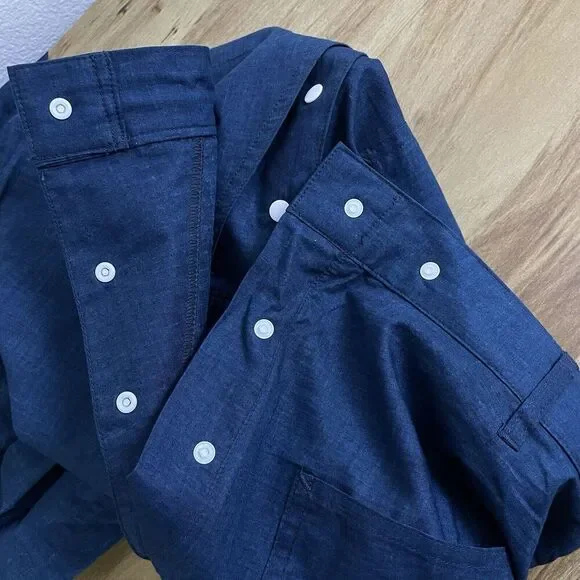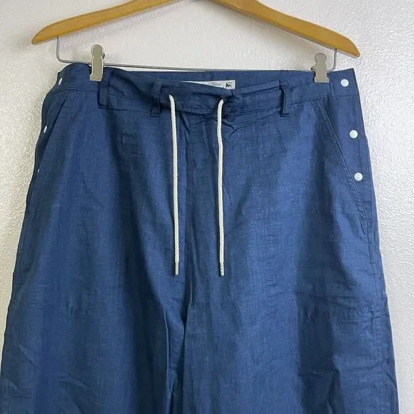 SasquatchFabrix Pants Large Womens Blue Snap Adjustable Wide Cotton Japanese