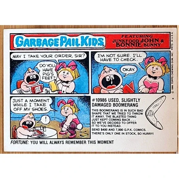 AUTHENTIC CARD. SEE PICTURES FOR ERROR(S)1986 TOPPS GARBAGE PAIL KIDS OTTO WHACK 213A BLUE CIRCLE ERROR CARD, CIRCLE UNDER HEADERALL CARDS ARE SHIPPED SECURELY IN PADDED PACKAGING. PLEASE REVIEW ALL PROVIDED PICTURES FOR CONDITION INQUIRES. SEE THE TREAZUREISLAND1 STORE FOR MORE GREAT DEALS! DON´T FORGOT TO FOLLOW US TO BE ALERTED WHEN MORE ITEMS ARE LISTED.