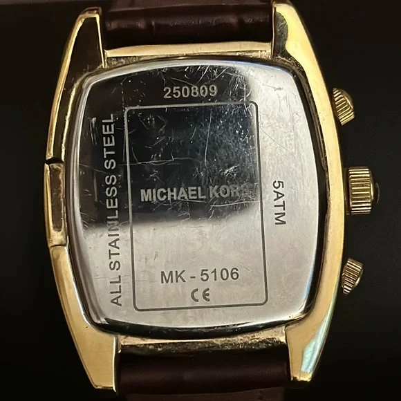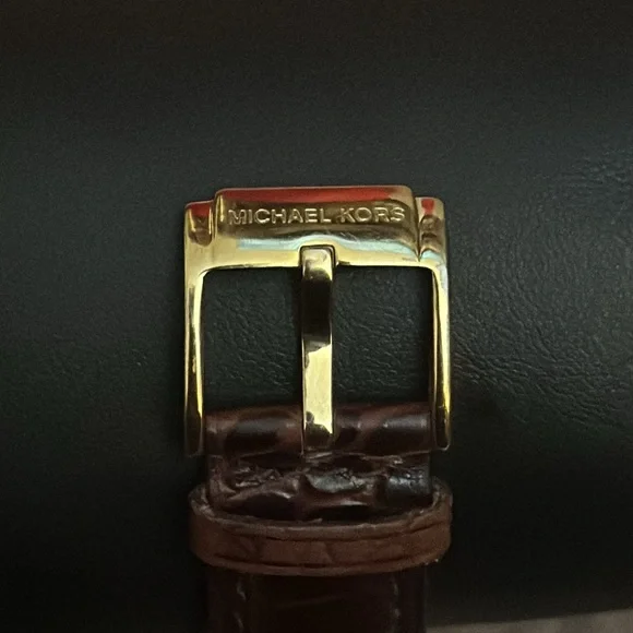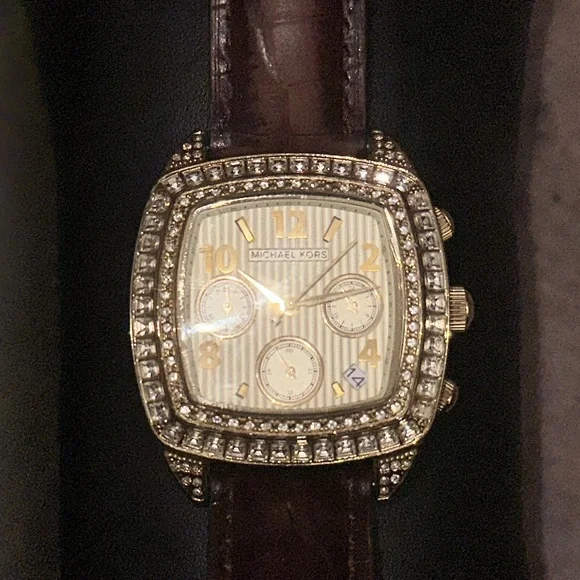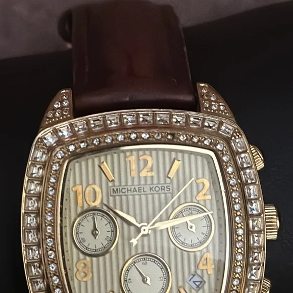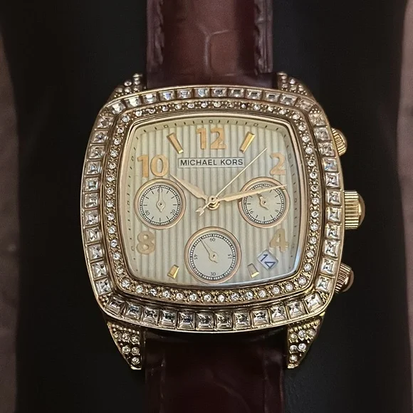 Michael Kors MK 5106 Gold Bling Watch with Genuine Leather Brown Band