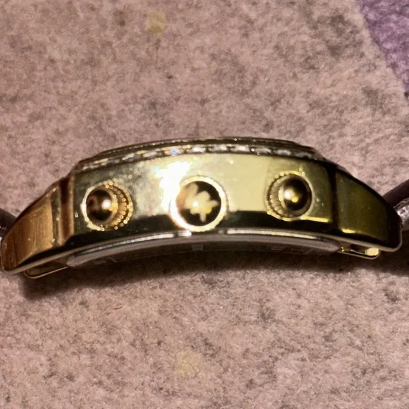 -Worn, but in good condition-One small stone missing on top right halo (see pic)…very very hard to notice even while looking. I only knew it was missing while examining this for sale.-Band still in excellent condition with only normal creasing from wear-Battery needs to be replaced