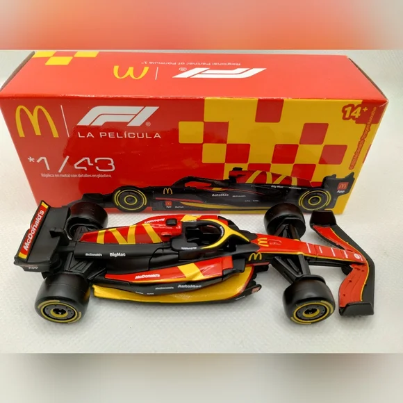 This is for ONE CAR ONLY and is a McDonald´s Mexico market exclusive promo race car for the F1 movie. This PROMO is only in Mexico and I have heard a few south American countries and NO where else in the world. This is a 1/43 scale car made by Bburgo. Here is you chance to get a limited run F1 car that surely will be a collectors item in the future!Red bullMercedes Ferrari AlpineAston Martin McLaren HaasWilliamsHackettLe coqFormula one Formula 1 F1Alpinestars