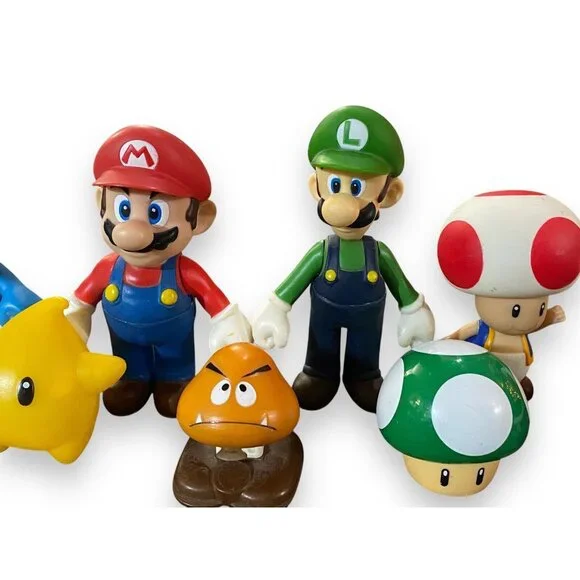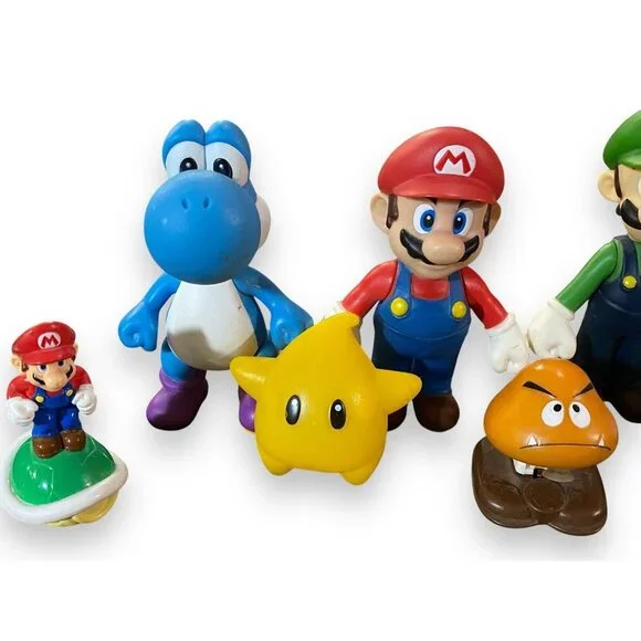 This collection of Super Mario Bros vinyl figures offers a delightful glimpse into the iconic world of Nintendo. The set includes beloved characters like Mario, Luigi, Yoshi, and Toad, each crafted with attention to detail. Ideal for collectors and enthusiasts, these figures reflect the charm and legacy of the franchise.• Authentic Banpresto figures• Includes iconic characters• Detailed design• Assorted character poses• Collectible itemFigures are in good condition with minor paint wear visible on some edges.
