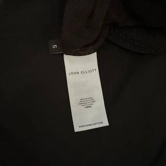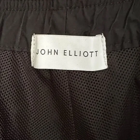 John Elliott Himalayan Cargo Pants Black Size 5 XXLExcellent condition BlackRelaxed fit cargo pants crafted from proprietary High Shrunk Nylon, which was developed in Japan for a durable and lightweight finish. The nylon taffeta is contrasted with heavyweight, matte Cordura canvas paneling. The resulting fabric development is water-repellent, complete with utility pockets and waterproof zippers.Seven pocket styling with two slant pockets at the front, one zippered pocket the seat, and dual use cargo pockets with a concealed opening, and zippered pockets. These pants feature knee pleats as well as an adjustable waistband and cinch cord at the hem for a versatile fit. Fully lined mesh interior. Aquaguard YKK Japan hardware. Tonal stitching.Self: 100% Nylon.Lining: 100% Polyester.