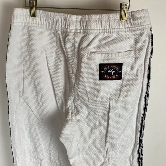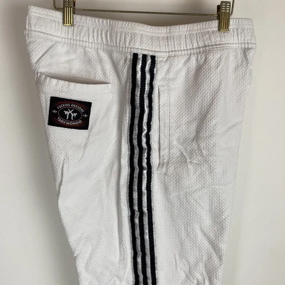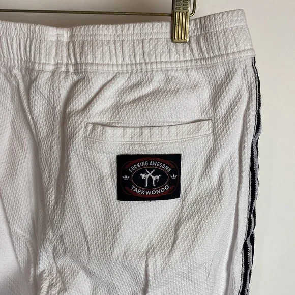 Adidas X Fuucking Awesome FA X Adidas Taekwondo White Gi Track Jacquard Pants L.Pre owned condition.Excellent condition.Waist flat around 16” inches across.Inseam 27” inches.Leg opening 7.5” inches.