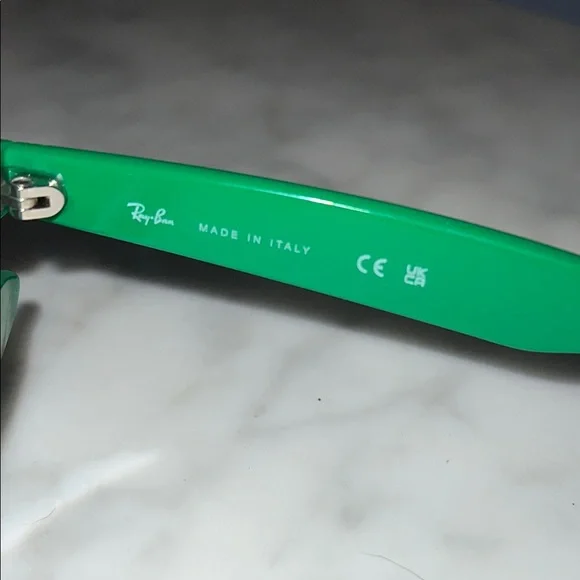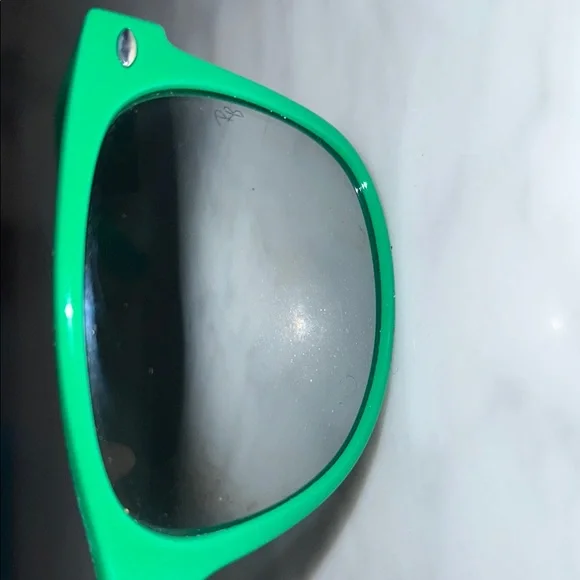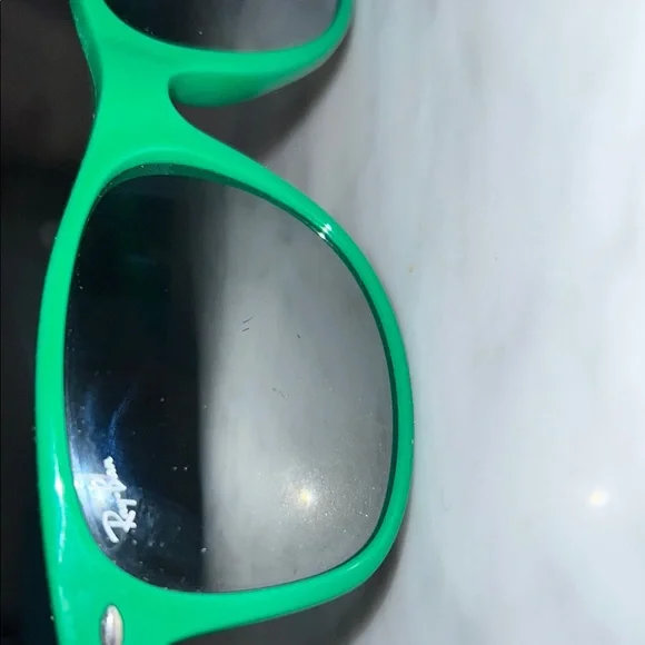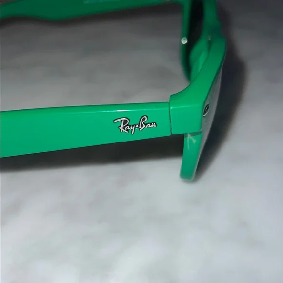 Stylish and durable, these Ray-Ban sunglasses feature a vibrant green frame and mirrored silver. Perfect for sunny days, they offer both protection and style. Black ray-ban...