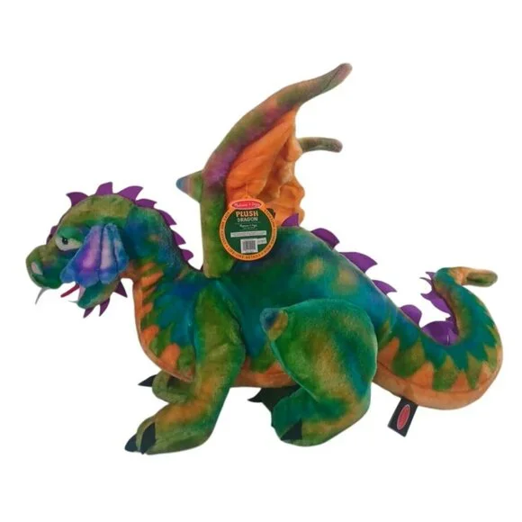 NWT! New 36” Melissa And Doug Dragon Plush Rainbow Multicolor Jumbo Size Retired