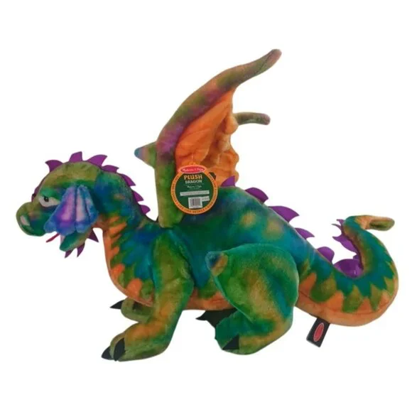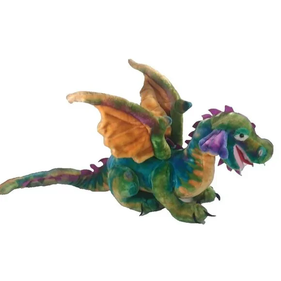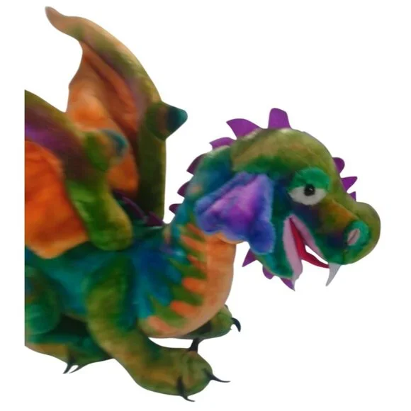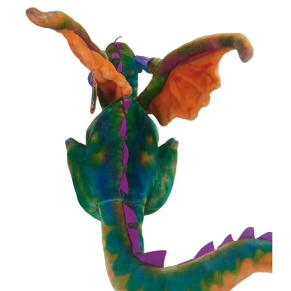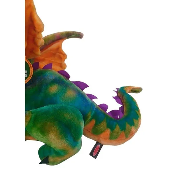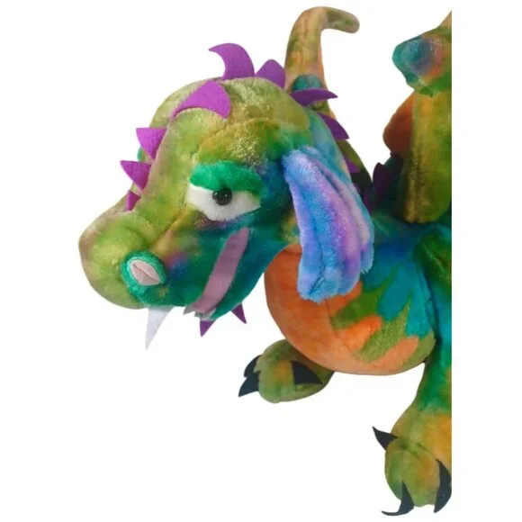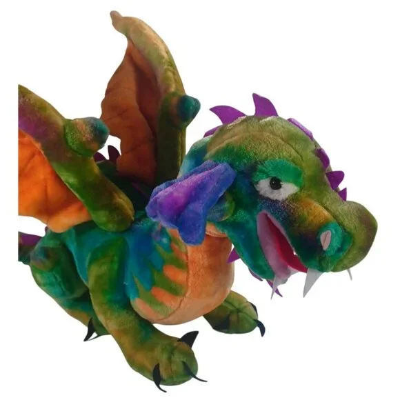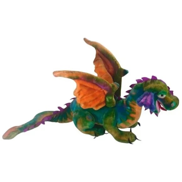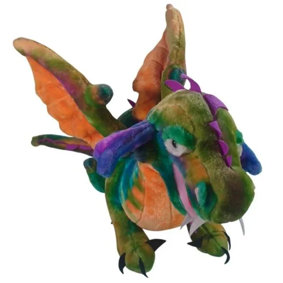 This dramatic plush dragon extends an open invitation to flights of fancy! With quality construction and great attention to imaginative details, vibrant colors and whimsical styling make this an awesome dragon!A fantastical plush with lots of fiery personality!Encourages fine motor skills, creative and imaginative play.Brightly colored materials are a feast for the eyes.Durably constructed from top-quality materialsSurface washable