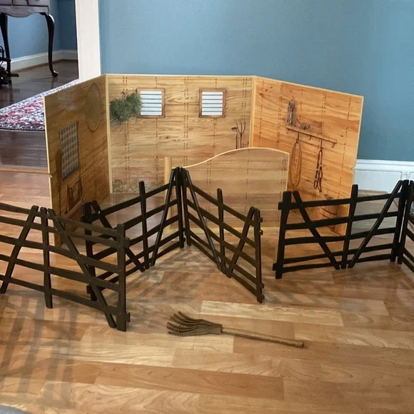 Includes: Trifold Barn, Six fence pieces, Rake, Barn door piece All in excellent condition!
